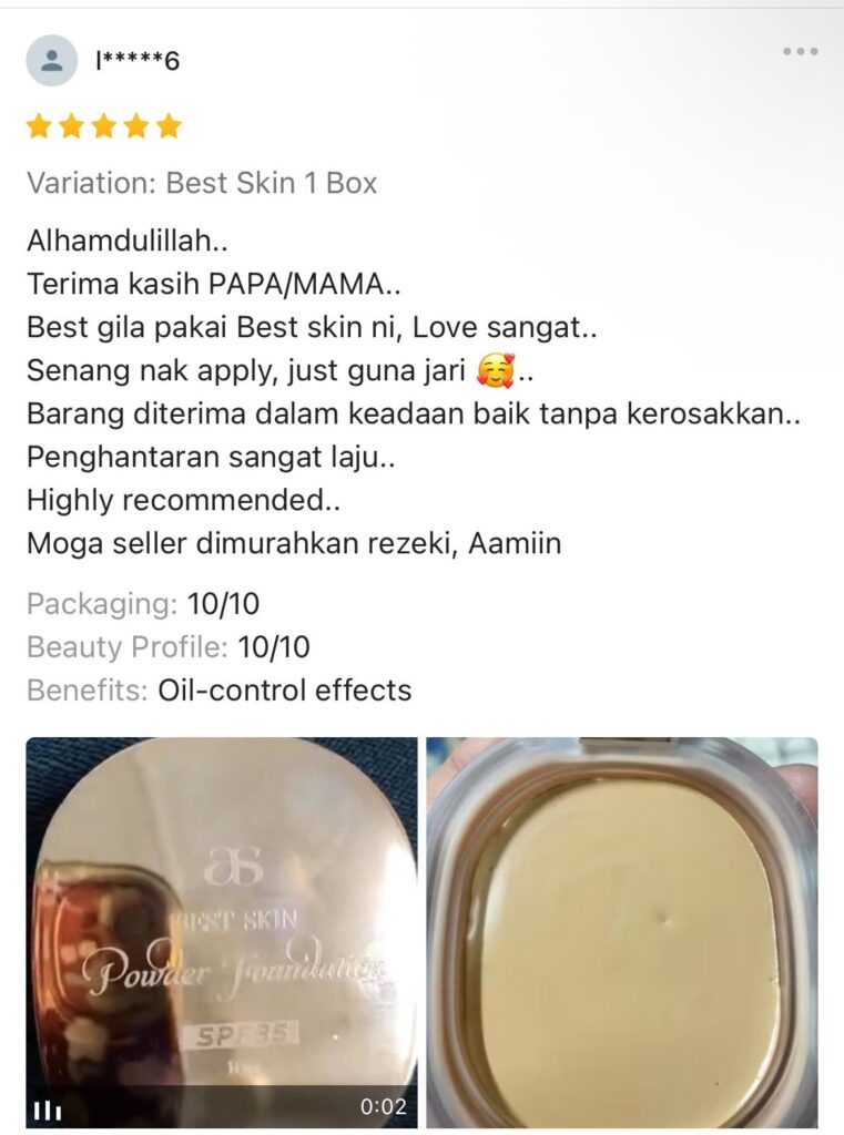 Ramai dah yang terbukti cantik Bila bertukar ke Best Skin Powder Foundation. Dapatkan Best Skin Foundation by AS Legacy hari ini untuk rasai sendiri kehebatannya.